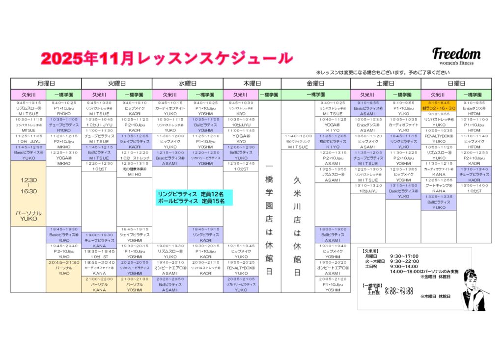 11月のレッスンスケジュールをPDFにてご確認いただけます。コチラをクリックしてください。