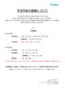 一橋年末年始案内掲示