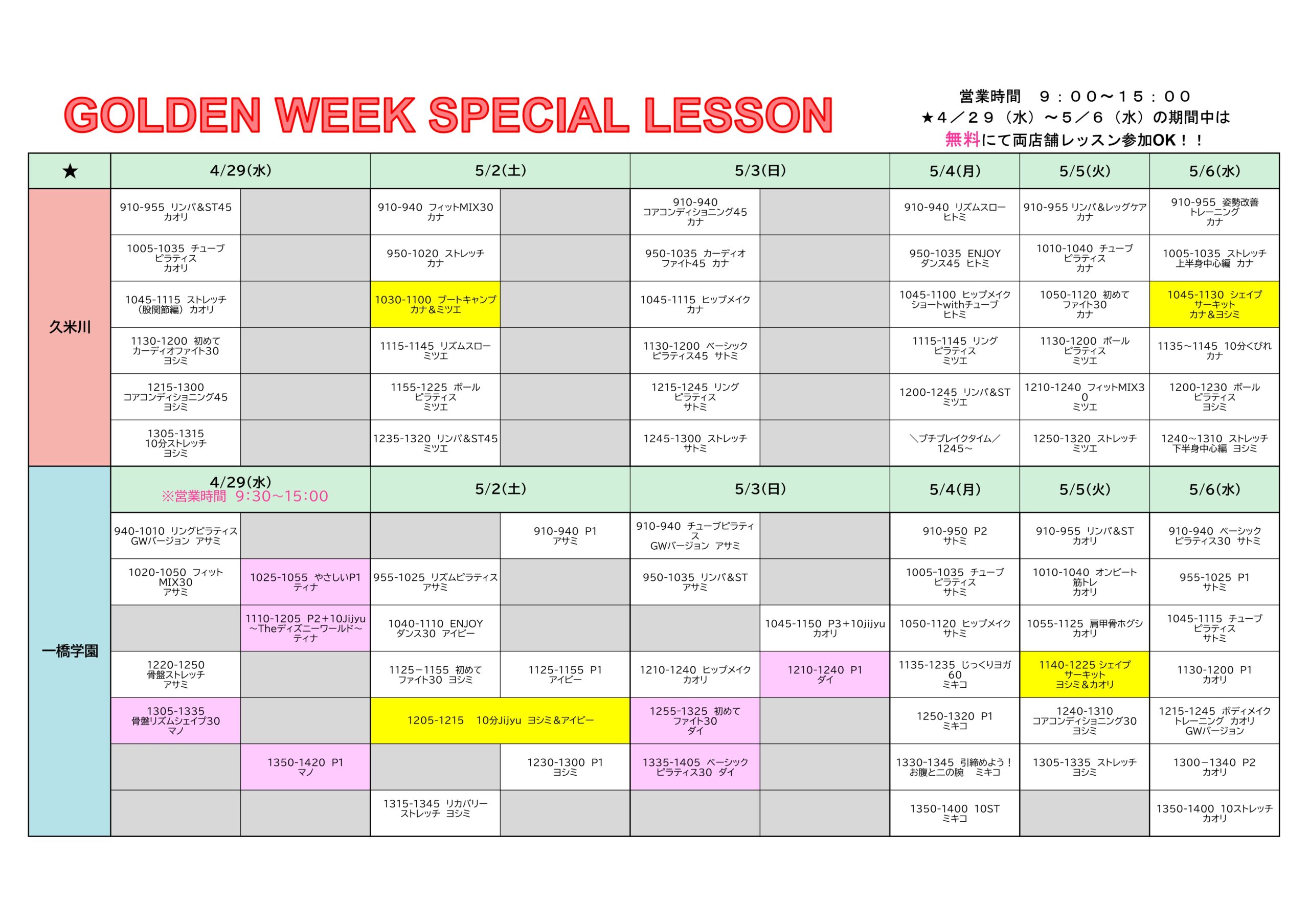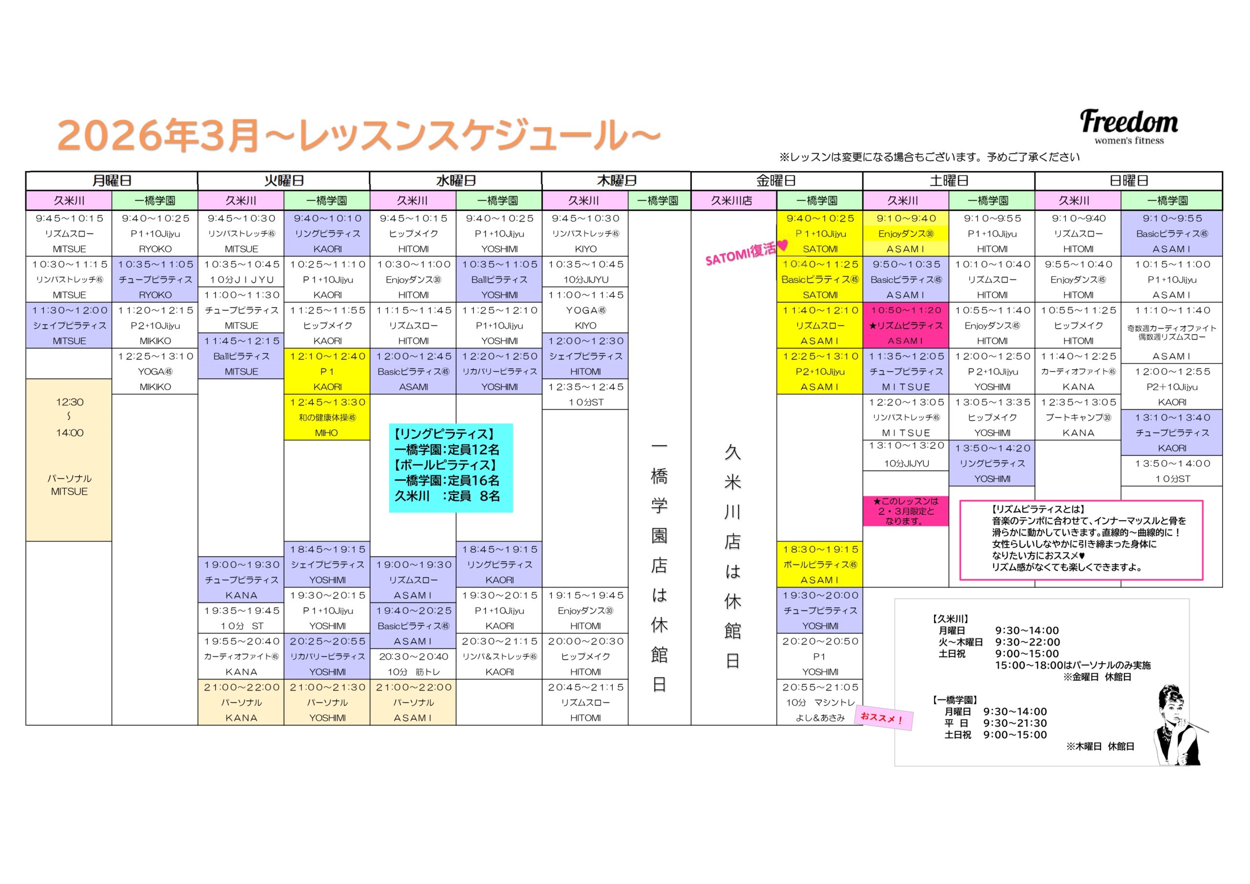 SCHEDULE&LESSONスケジュールとレッスン紹介