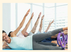 リングの特性をいかしたピラティスのクラス。全身のエロンゲーション(引き伸ばし)効果を引き出し姿勢を改善。のびやかで快適な身体作りを目指します。