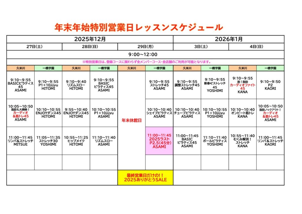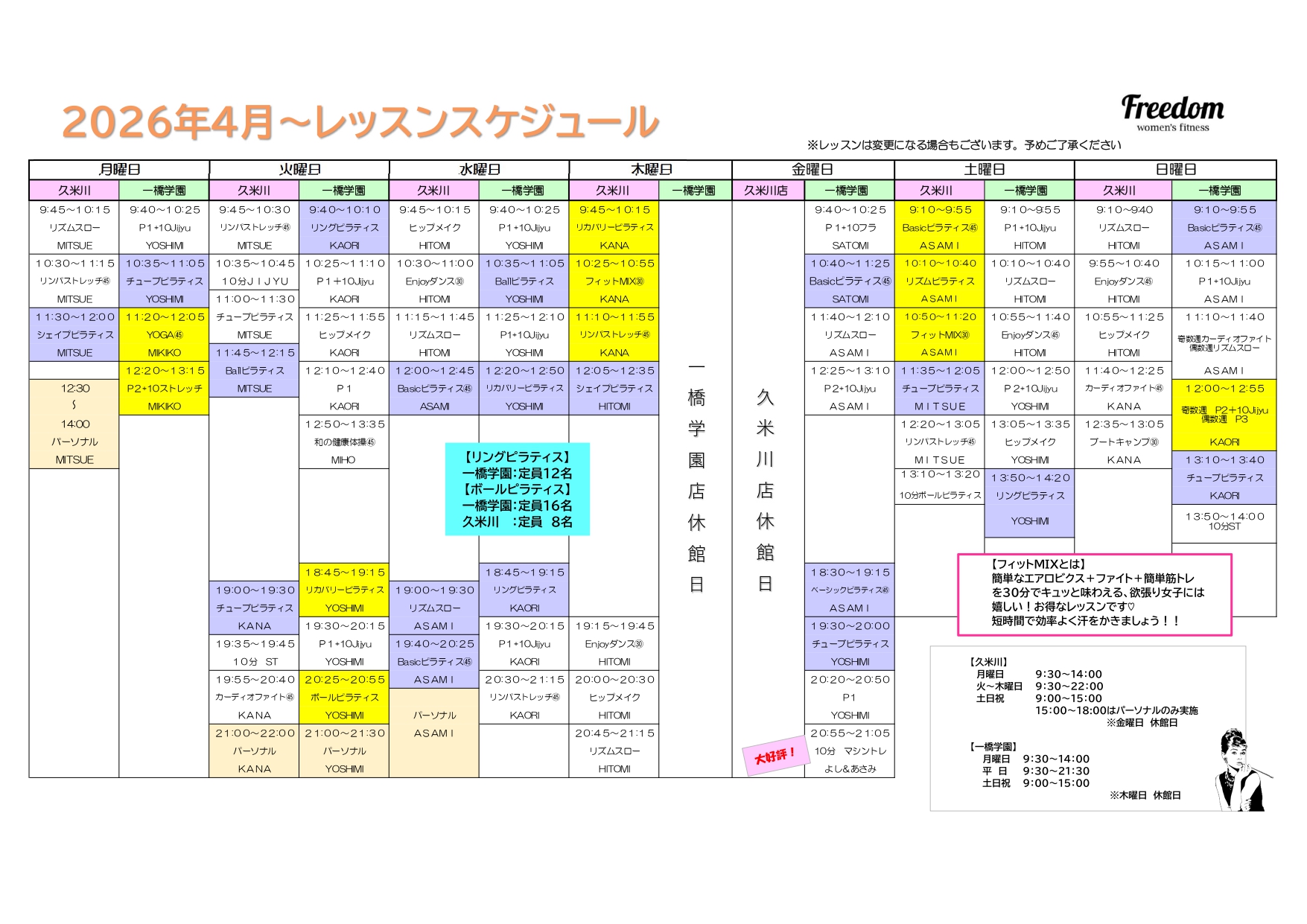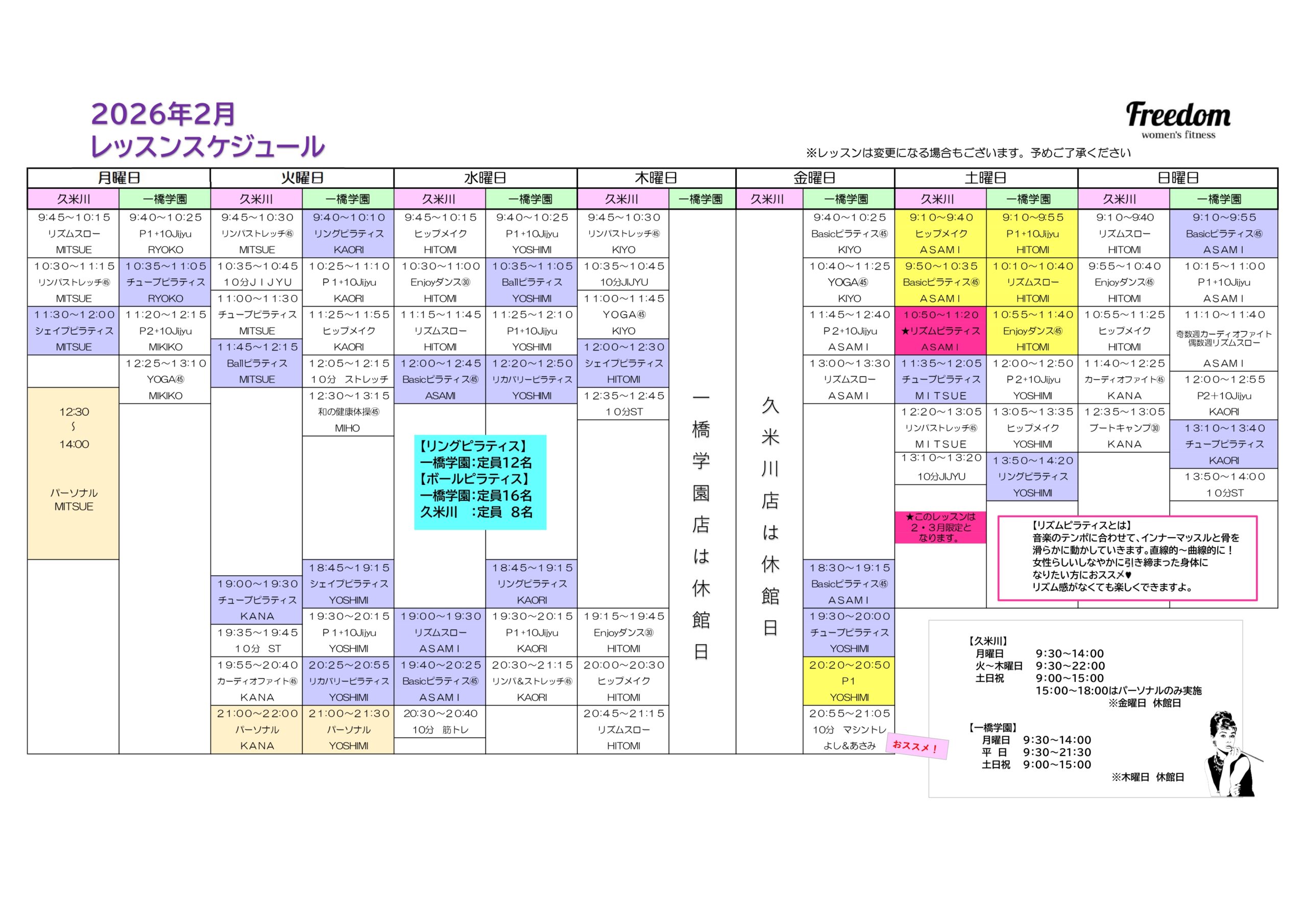 レッスン内容・担当者は変更となる場合がございます。ご了承ください。